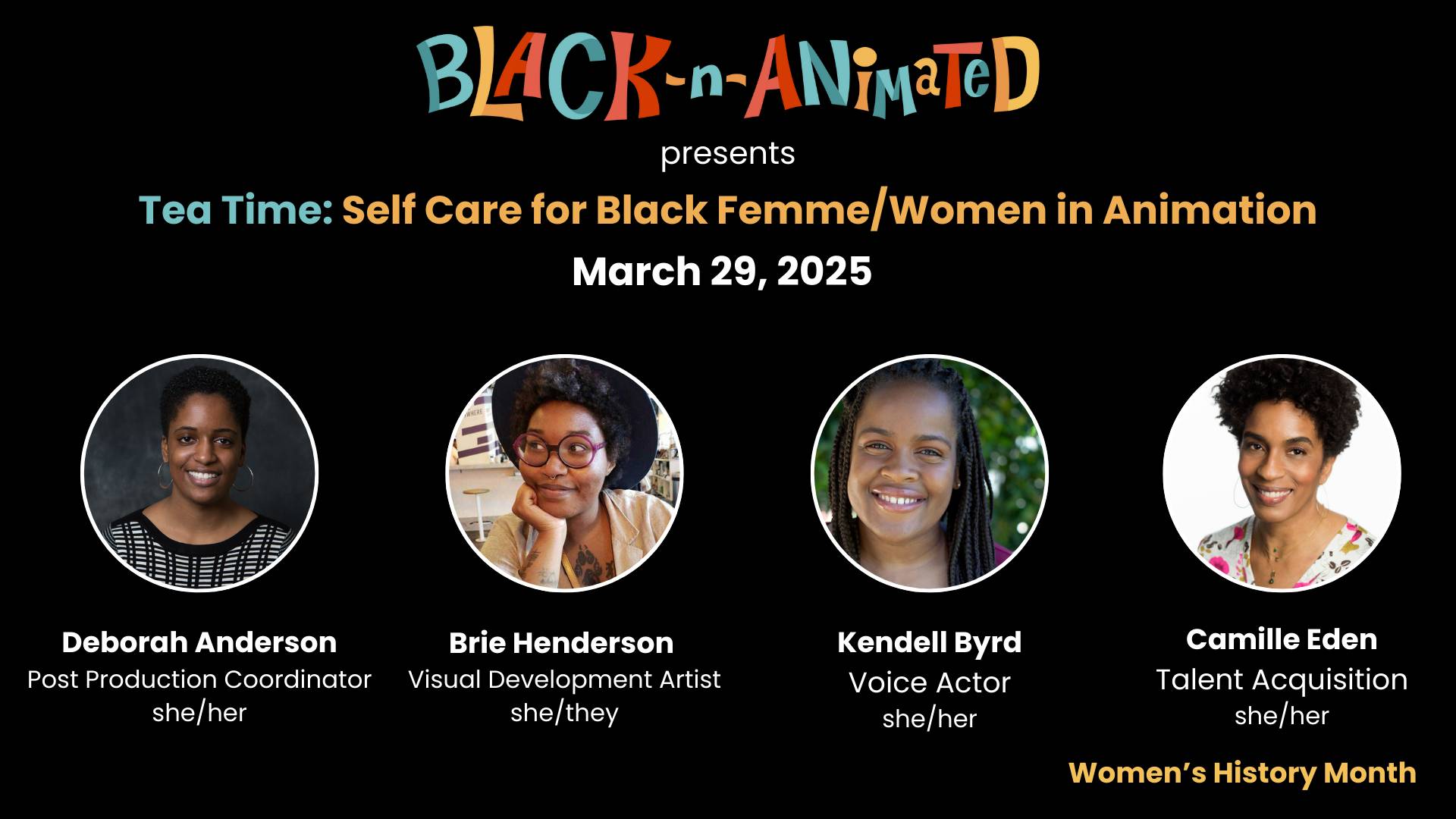 In the Spring, when I was still a part of Black N Animated's leadership team, I coordinated and lead a Black Women's History Month panel. I brought together Black women that work in various parts of the industry from creative executive to voice acting to editing to share their experiences with BNA's members.